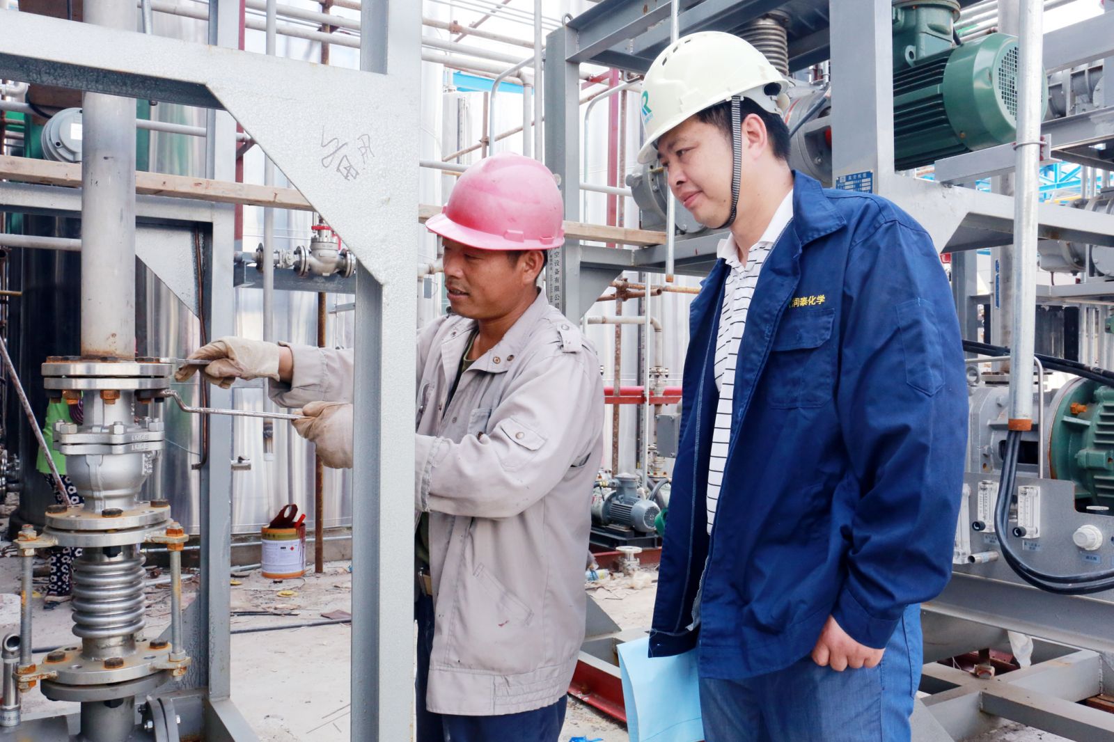 2017年润泰化学(泰兴)公司的建设如火如荼,他日夜坚守在项目工地,为打造本行业最优质的产品,不断完善工艺流程。现代化的科技设备切实降低了劳动程度,提高了生产效率与清洁水平,对生产工艺、原辅材料、生产设备等进行优化和提升,实现了资源合理利用,大大提高了产品纯度。调整废水、废气处理工艺,使废水、废气处理更加有效彻底,实现了达标排放。