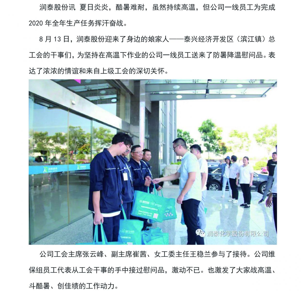来了,娘家人——泰兴经济开发区工会为润泰一线员工送清凉