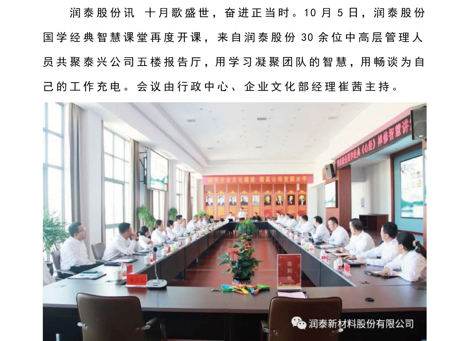 【知识强企】润泰股份国学经典智慧课堂再度开课