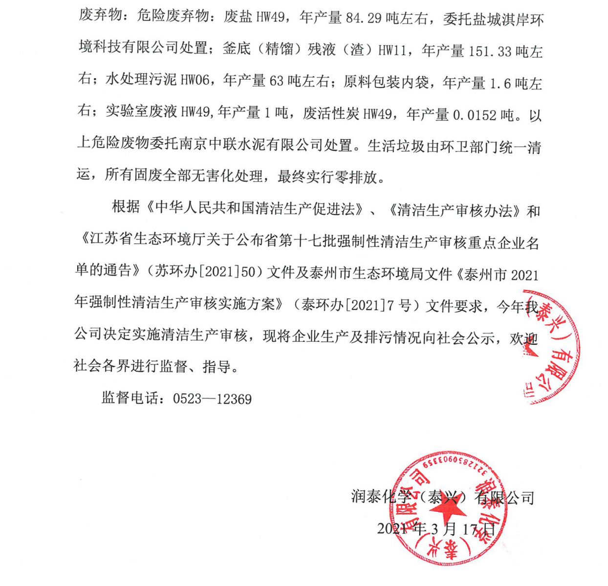 润泰化学(泰兴)有限公司