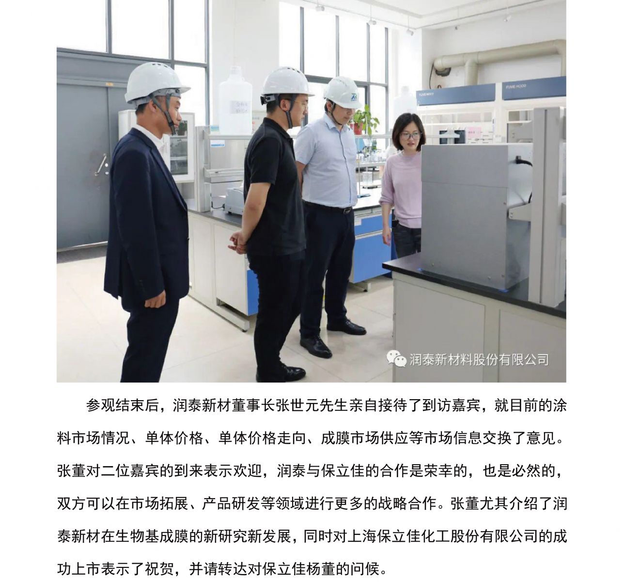 上海保立佳化工到访润泰新材